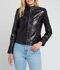 Womens Jami Classic Black Cafe Racer Leather Jacket